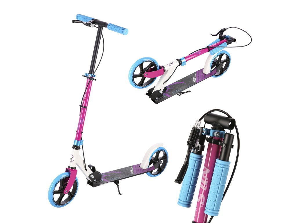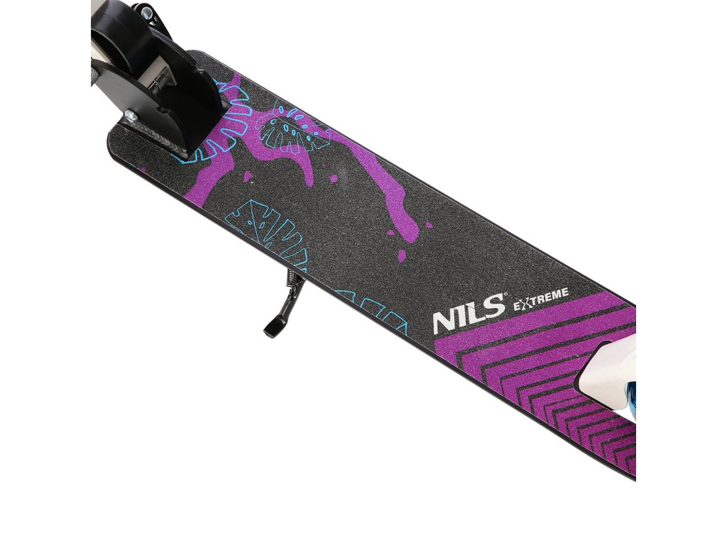 Koloběžka NILS Extreme HM0107 je vhodná pro děti a dorost. Charakteristikou modelu HM0107 je sklopný stojánek a zadní brzda ovládána páčkou z řídítek.