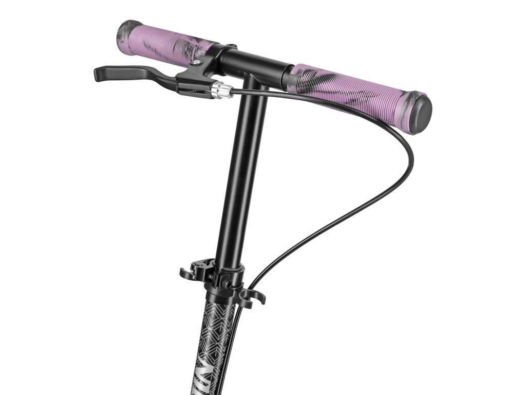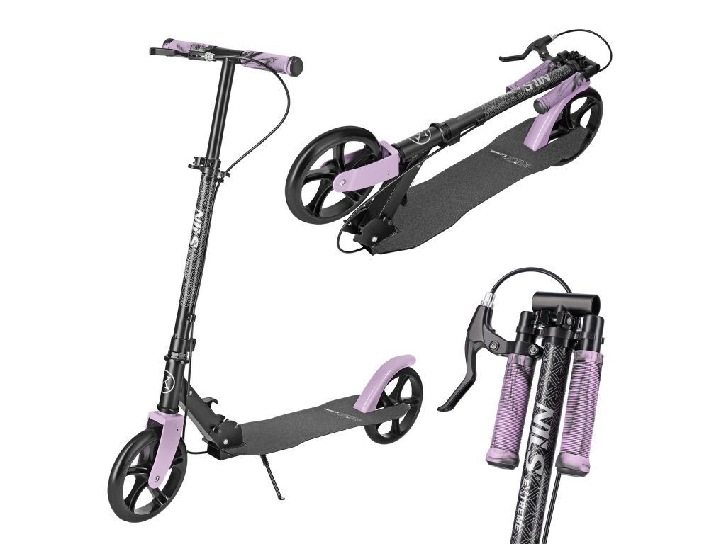 Koloběžka HM183 je vybavena skládacím rámem, který výrazně usnadňuje její přepravu a skladování. Ve složeném stavu jsou její rozměry 75 x 33 x 18 cm, což znamená, že se snadno vejde do kufru auta, pod stůl nebo do skříně. V rozloženém stavu jsou její rozměry 90 × 34 × 87–92–97 cm. Model má prostornou platformu a ruční brzdu v kombinaci s nášlapnou brzdou na zadním kole. Při častých toulkách městem také oceníte praktický stojánek.