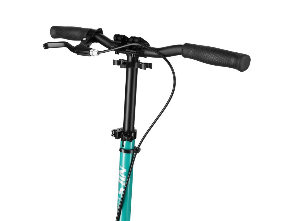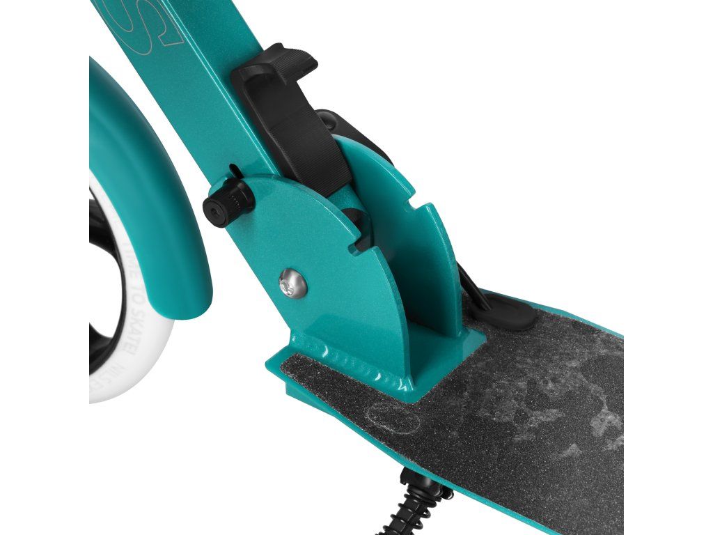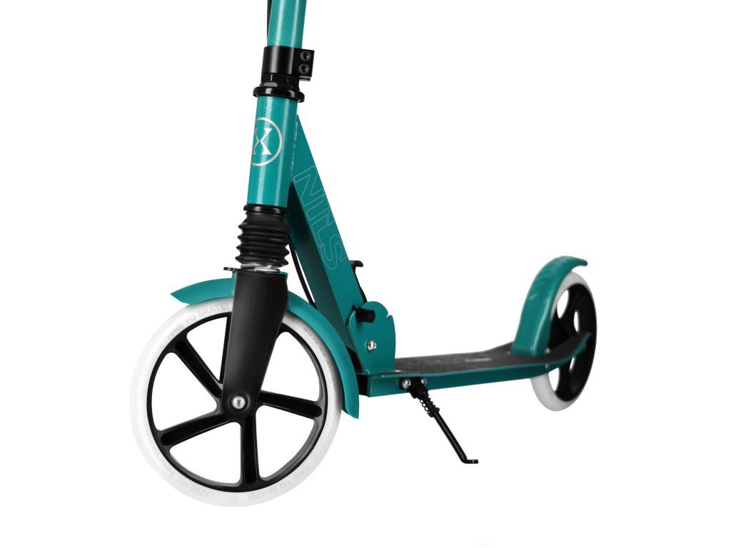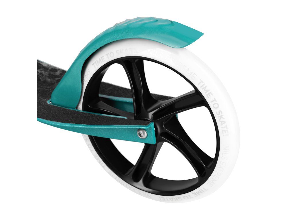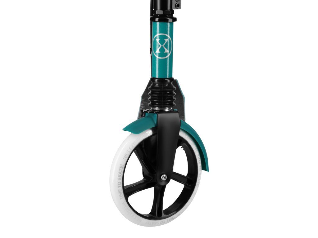 Pohodlnou jízdu zajišťují velká 20centimetrová kola z polyuretanu (PU), která tlumí drobné nerovnosti povrchu a zajišťují stabilitu i při vyšších rychlostech. Ložiska ABEC 9 umožňují plynulé a tiché otáčení kol, což výrazně zvyšuje jízdní komfort. Tlumič na předním kole napomáhá klidnější jízdě a snižuje vibrace přenášené do řídítek.