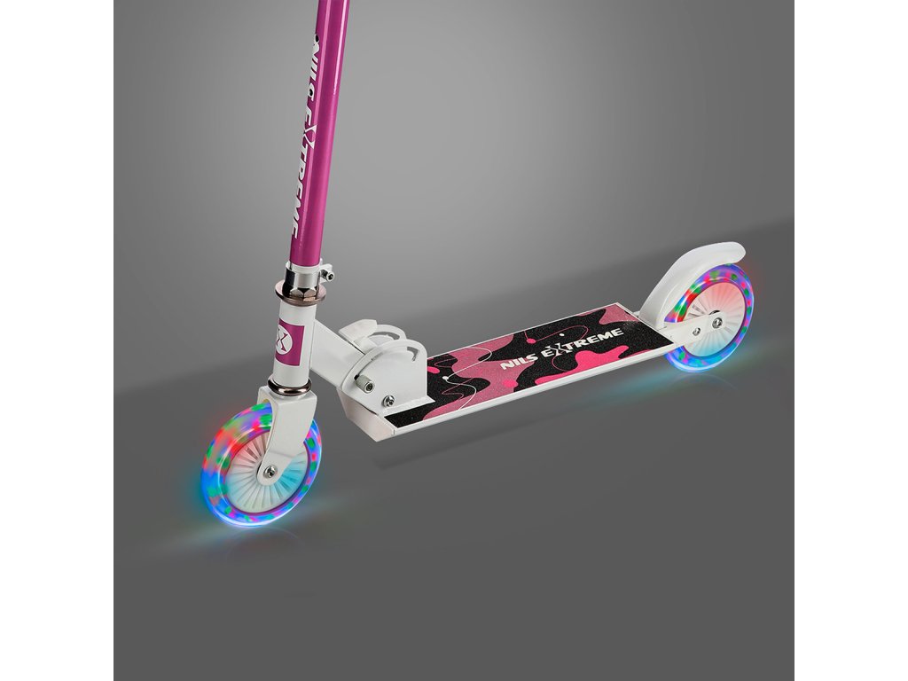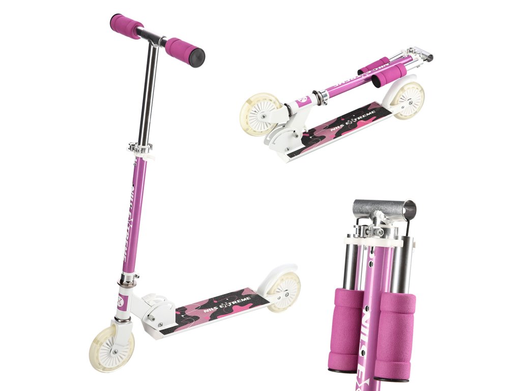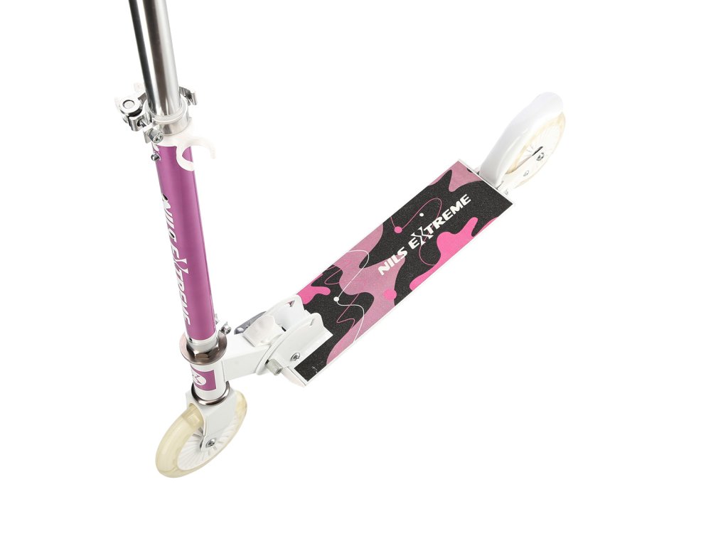 Skládací koloběžka NILS Extreme HD505 je určená především dětem. Hlavní předností tohoto modelu jsou polyuretanová kolečka o průměru 120 milimetrů, které zaručují pohodlnou jízdu. Koloběžku lze složit, takže při uskladnění nezabírá mnoho místa a zároveň si ji můžete brát téměř kamkoliv sebou ať už jedete na výlet například vlakem a nebo pokud jedete autem na dovolenou do zahraničí. Dalšími výraznými prvky jsou protiskluzová nášlapná plocha, madla z pěnového materiálu a zadní přítlačná brzda. Klademe důraz především na atraktivní vzhled a kvalitní provedení, díky kterému máte jistotu, že kupujete kvalitní koloběžku jenž potěší a zároveň i ochrání. Chcete-li pro bezpečnost udělat maximum, nezapomeňte se porozhlédnout po přilbě a chráničích.
