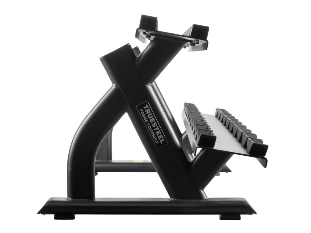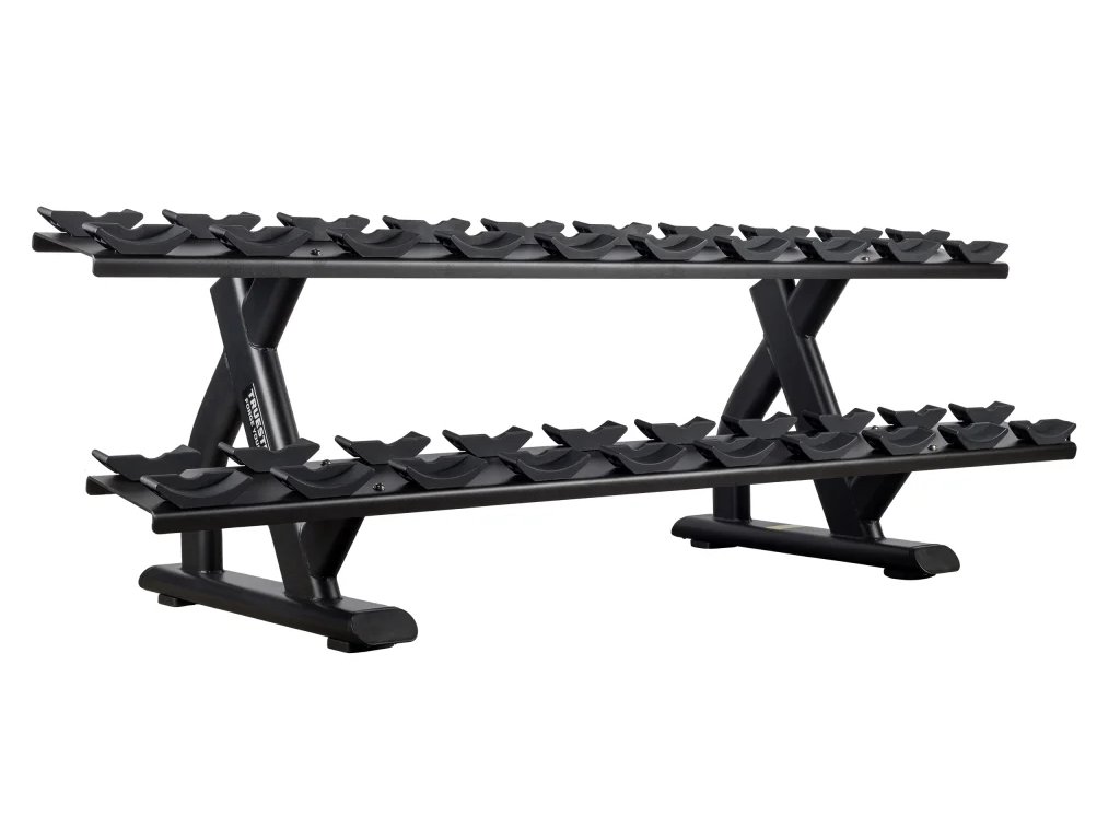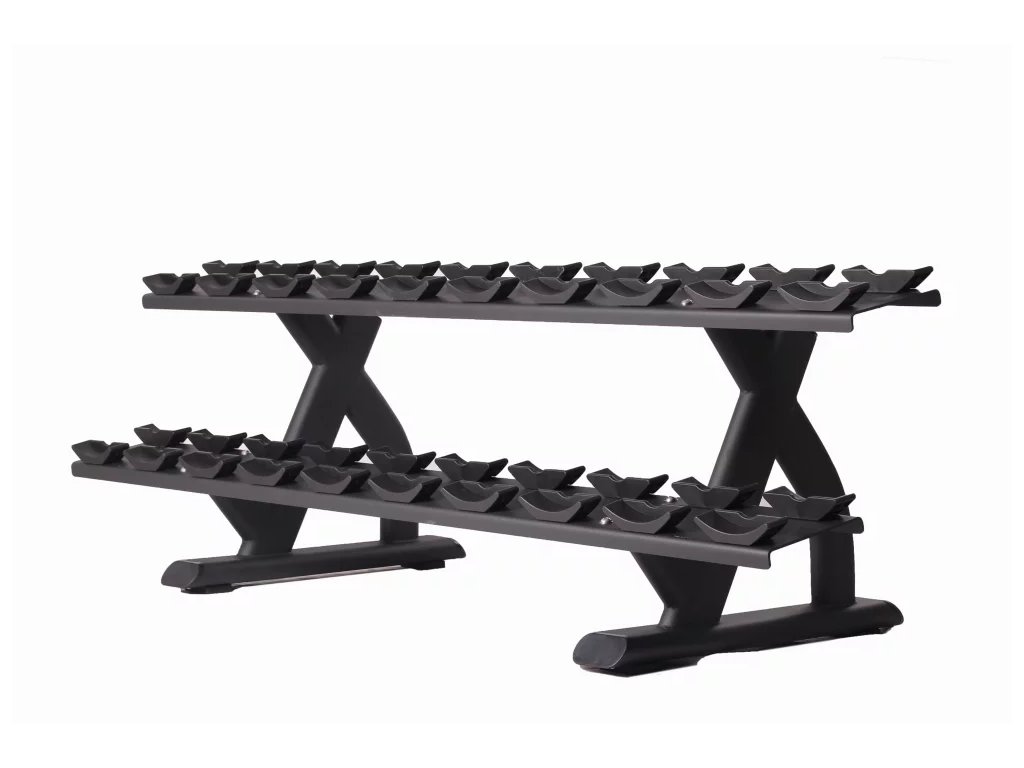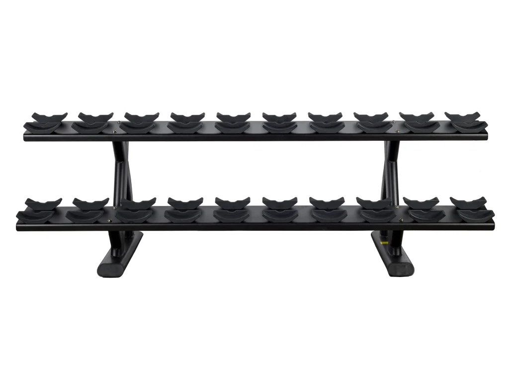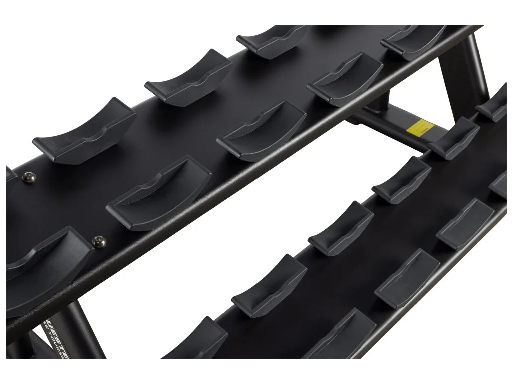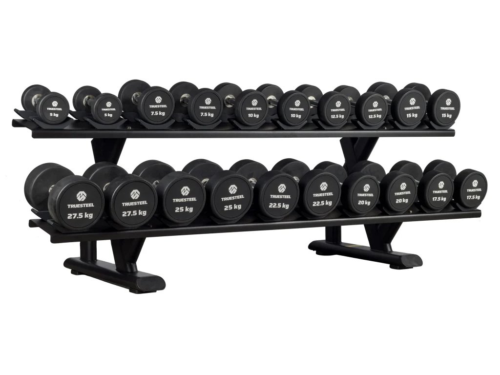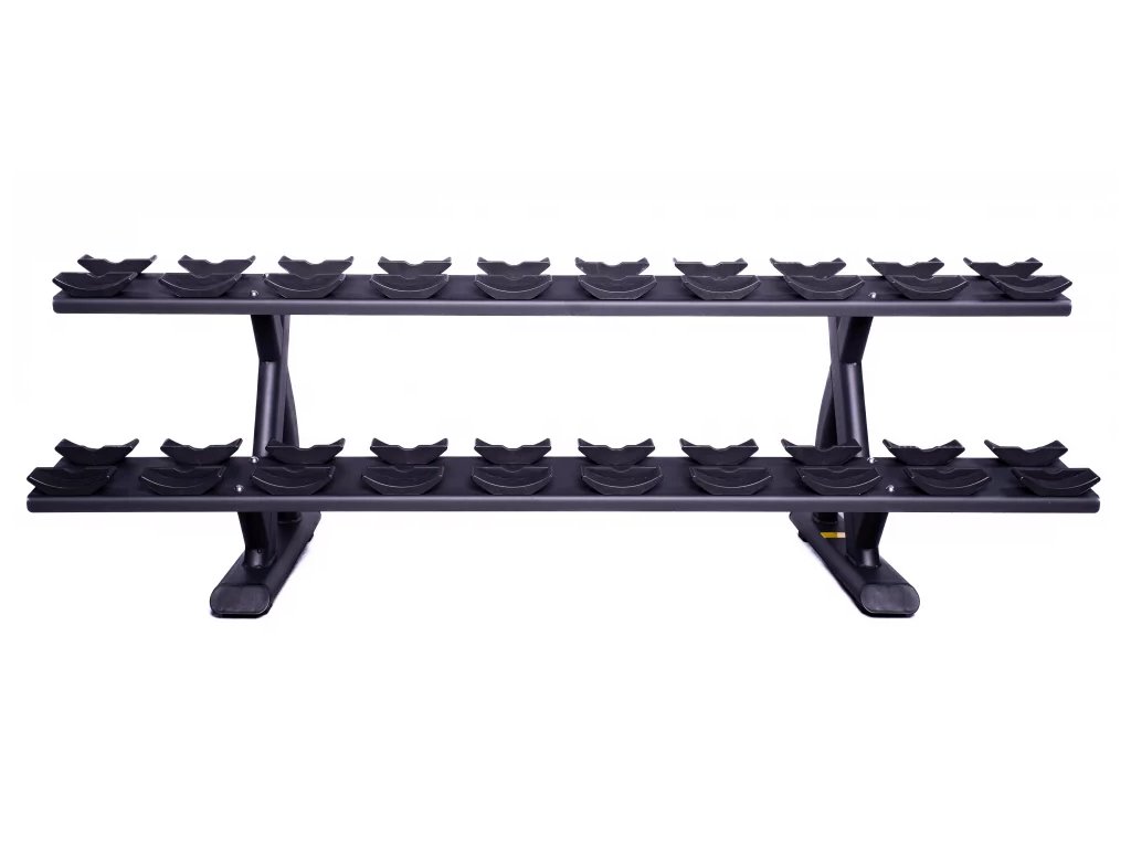 Mějte dokonale organizované jednoručky Kvalitní dvouřadý stojan zajistí dokonalou organizaci kulatých jednoručních činek. Tento robustní stojan je vyroben z velmi kvalitní oceli o rozměrech profilu 50 x 120 x 2 mm. Velkou předností tohoto stojanu jsou integrované držáky tvarované přesně na kulaté jednoruční činky. Díky tomu se vám nestane, že by činka ze stojanu spadla. Nebudou se o sebe třít, což vám umožní velmi pohodlnou a jednoduchou manipulaci s činkou. Dopřejte si tento originální a praktický stojan. 10 párů činek Dvouřadý stojan nabízí ideální prostor pro položení až 10 párů činek. Každé patro je široké 210 cm a vyrobeno z kvalitní oceli. Maximální zatížení 620 kg Ohromující nosnost je důkazem kvalitního zpracování s důrazem na detail. Díky vysoké nosnosti Vám stojan umožní vlastnit i těžké činky pro ty nejsilnější sportovce. Protiskluzové podložky Chrání podlahu před poškozením a výborně tlumí otřesy a vibrace. Zajistí stabilitu na površích, kde je vyžadována. Maximální stabilita Stojan je vybaven podpěrnými rámy, které dodávají vysokou stabilitu celé konstrukci. Rozměry profilu tohoto pomocného rámu jsou 50 x 120 x 2 mm. Díky těmto rámům získáte prémiový stojan s odolností vůči vysoké zátěži. Hlavní výhody stojanu na činky 2-Tier Dumbbell Rack: masivní konstrukce odolná vůči vysoké zátěži maximální nosnost 620 kg možnost uložení až 10 párů činek podpěrné rámy pro vysokou stabilitu protiskluzové podložky integrované držáky na kulaté jednoruční činky integrované stojany na činku organizace cvičebního prostoru vhodný do všech fitness center zaoblené hrany proti případnému poranění 100% garance spokojenosti Veškeré zakoupené zboží můžete do 30 dnů zdarma vrátit bez udání důvodu. To znamená, že zboží, které chcete vrátit, u Vás zdarma vyzvedneme a peníze Vám vrátíme na Vámi zvolený účet do 2 pracovních dnů po navrácení zboží. Stačí nám napsat na info@truesteel.eu nebo zavolat na +420 777670947. Vrácení zboží má 2 podmínky - zboží musíte řádně zabalit, aby se při přepravě nepoškodilo a zakoupené zboží nesmí být poškozené. Nejsme půjčovna :) Garance slouží k prohlédnutí zboží, ne k jeho opakovanému použití.Doplňkové parametry