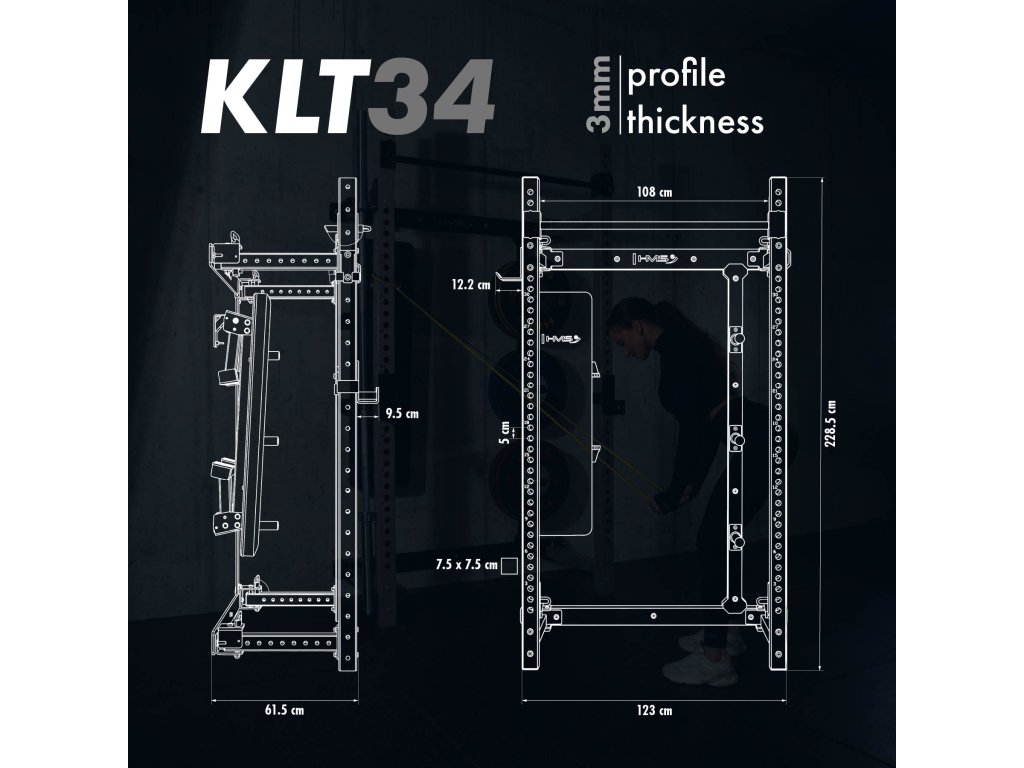 Power Rack KLT34 HMS Fitness je navržen speciálně pro domácí posilovny, kde hraje klíčovou roli úspora prostoru, vysoká funkčnost a bezpečnost. Díky skládání rámů k sobě nevyžaduje vysoký strop, a je proto ideální do bytů, sklepů i garáží.
