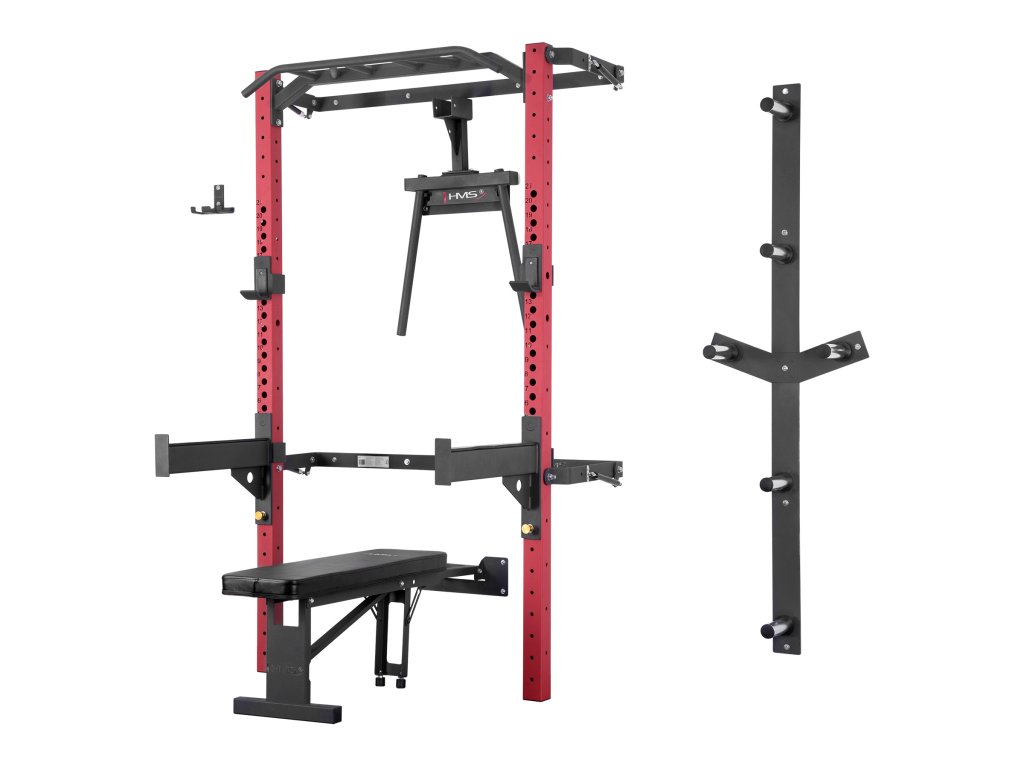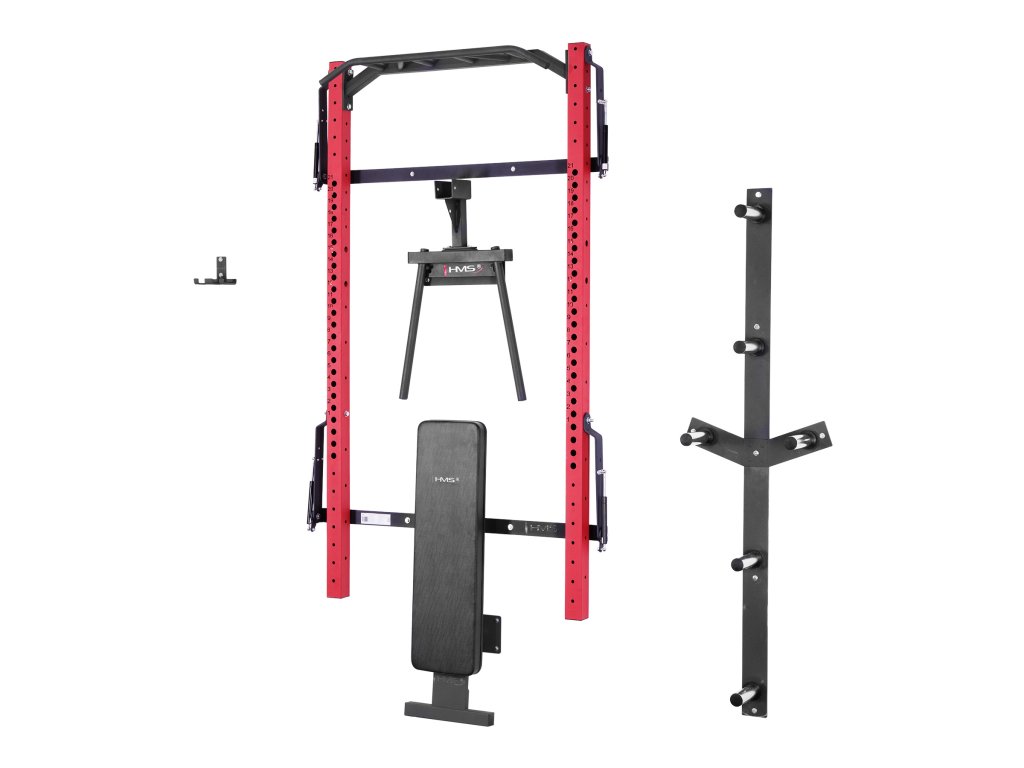 Skládací posilovací stojan - Power Rack KLT22 od společnosti HMS byla navržen tak, aby odpovídal současným trendům na trhu a splňoval očekávání nejnáročnějších zákazníků. Rack v této variantě se prodává s dalším vybavením. Kromě hrazdy, háků na činky a bezpečnostních podpěr zde najdete skládací rovnou lavici, adaptér na dipy, nástěnný stojan na činky a držák na osy. Taková sada rozšíří vaše tréninkové možnosti a poskytne vám nové úložné prostory pro vaše vybavení.