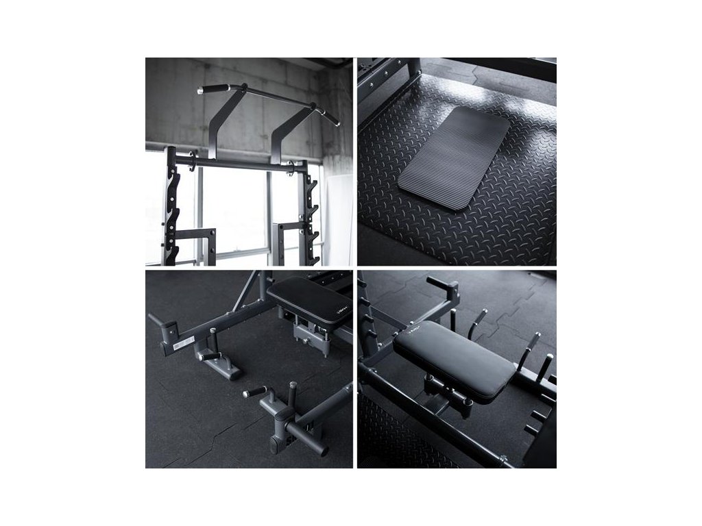 SMP01 je vaše nové tréninkové centrum, které vám umožní nejen provádět hip thrusty nebo mrtvý tah. Tento přístroj je navíc vybaven hrazdou na přítahy, úchyty na dipy, háky na činku, bezpečnostními zarážkami, trny na skladování závaží a čepy pro práci s odporovou gumou. Díky promyšlené konstrukci a širokým možnostem nastavení se SMP01 hodí jak do domácí posilovny, tak do pokročilejších tréninkových prostor.