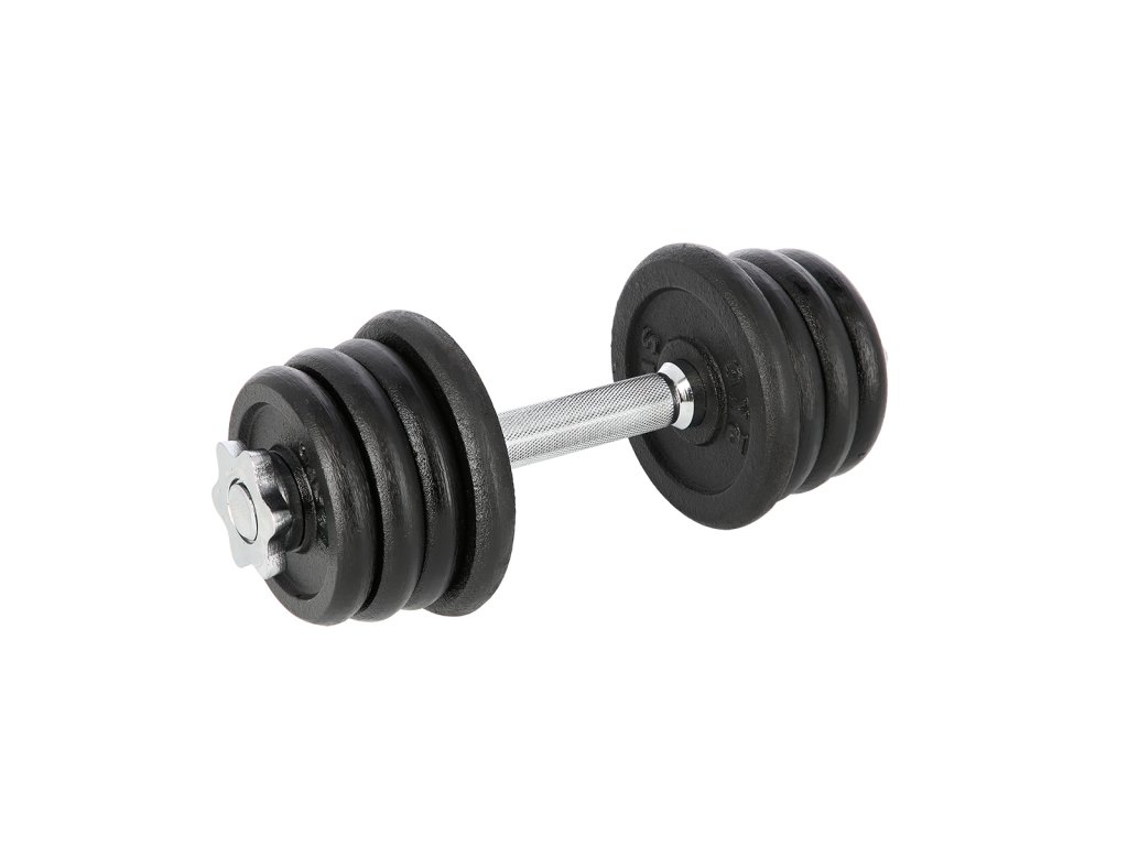 Sada obsahuje následující závaží: 4x0,5 kg; 8x1 kg; 12x1,25 kg; 8x1,5 kg; 4x2 kg; 8x2,5 kg; 4x5 kg; 2x10 kg; 2x15 kg; 2x20 kg.