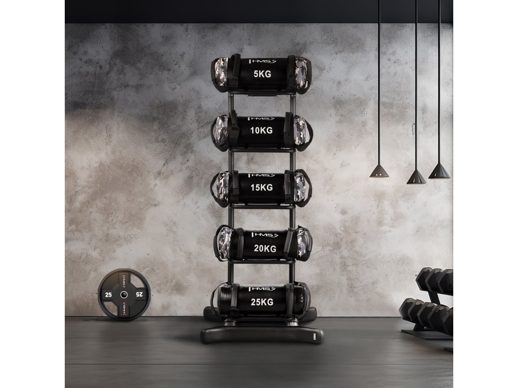 STR42 je pevný a stabilní stojan, který umožňuje uložení 5 power bagů různých hmotností, čímž zajišťuje pořádek a úsporu místa. Díky své vysoké konstrukci je ideální volbou pro profesionální posilovny, fitness centra i domácí tréninkové zóny.