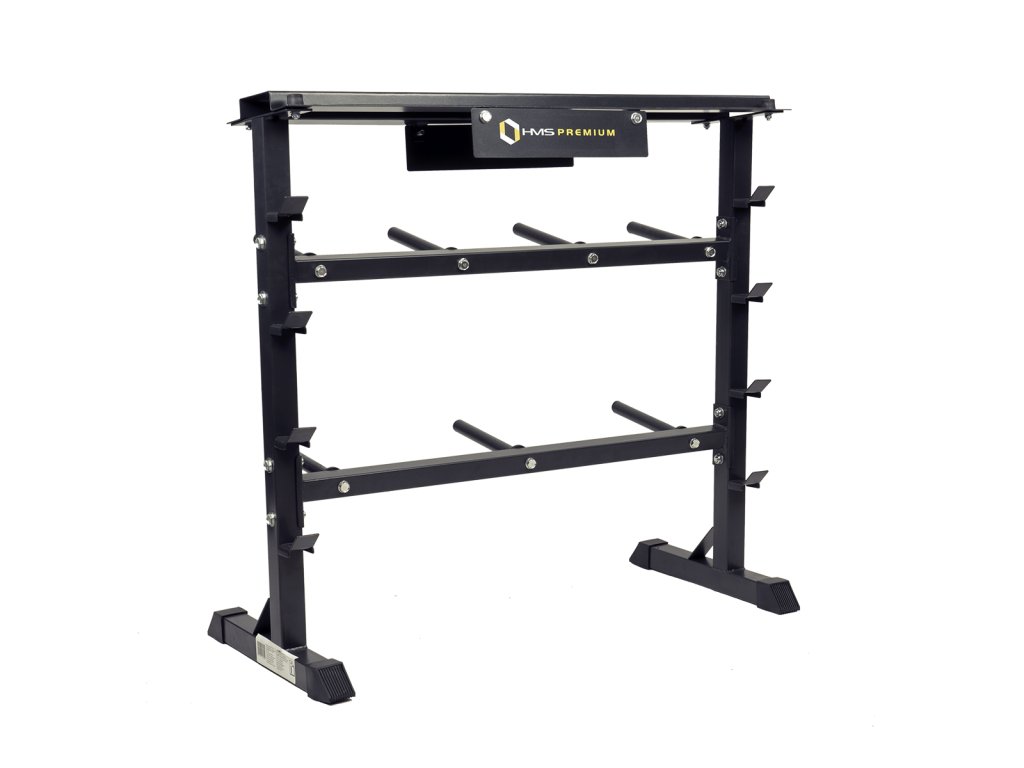 Stojan HMS Premium STR12 je navržen pro ukládání kotoučů a hřídelí. Stojan disponuje 4-mi pozicemi pro osy, 7-mi trny pro talíře a horní plochou pro jednoruční činky. Odkládat na něj můžete náčiní do celkové hmotnosti 250 kg. STR12 je vyroben s ohledem na bezpečí uživatelů i odkládaného nářadí.