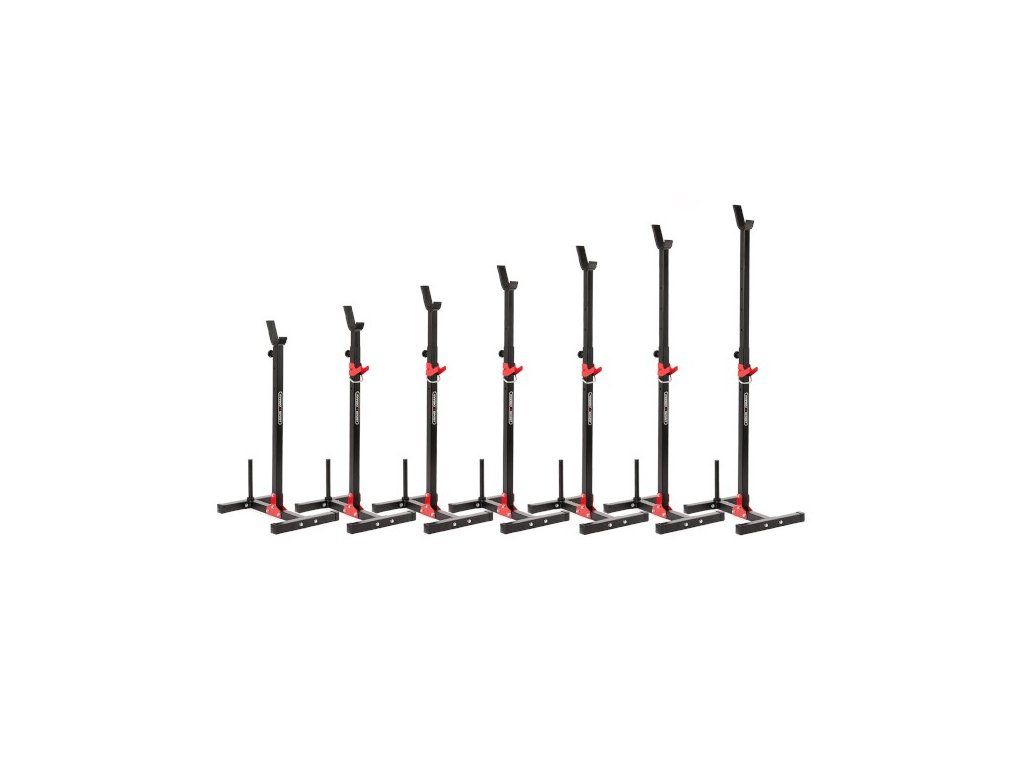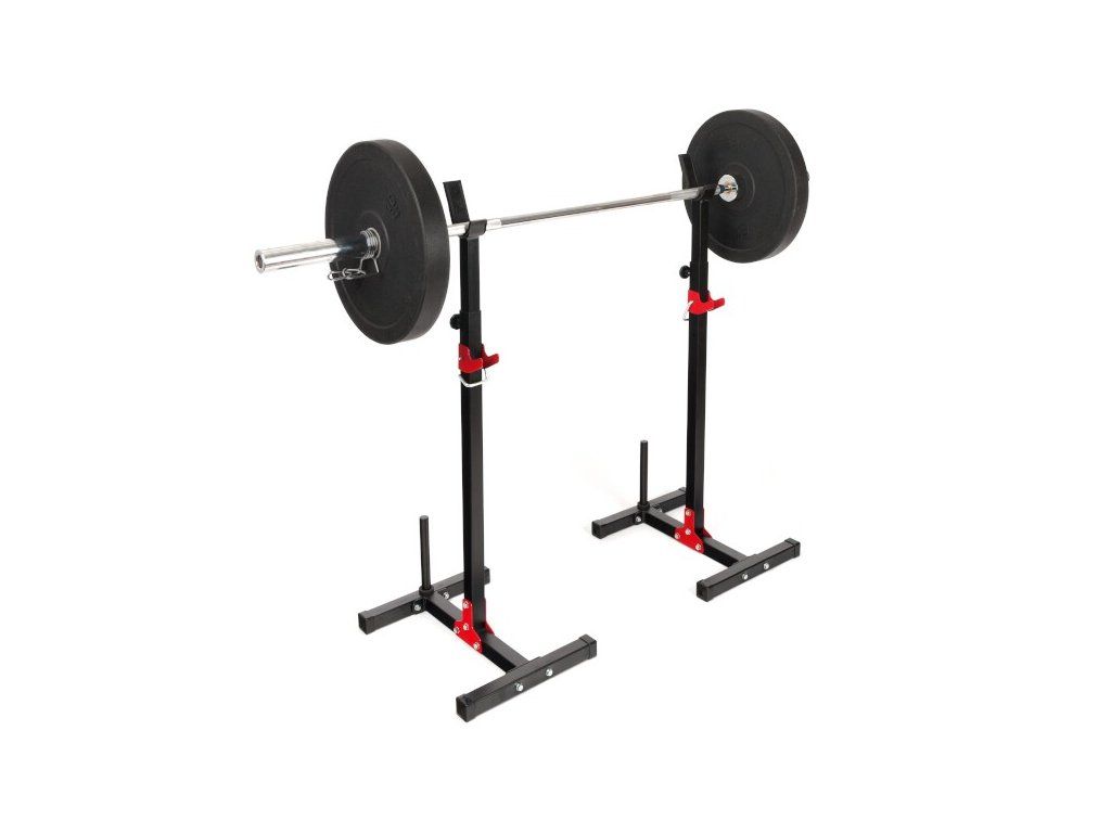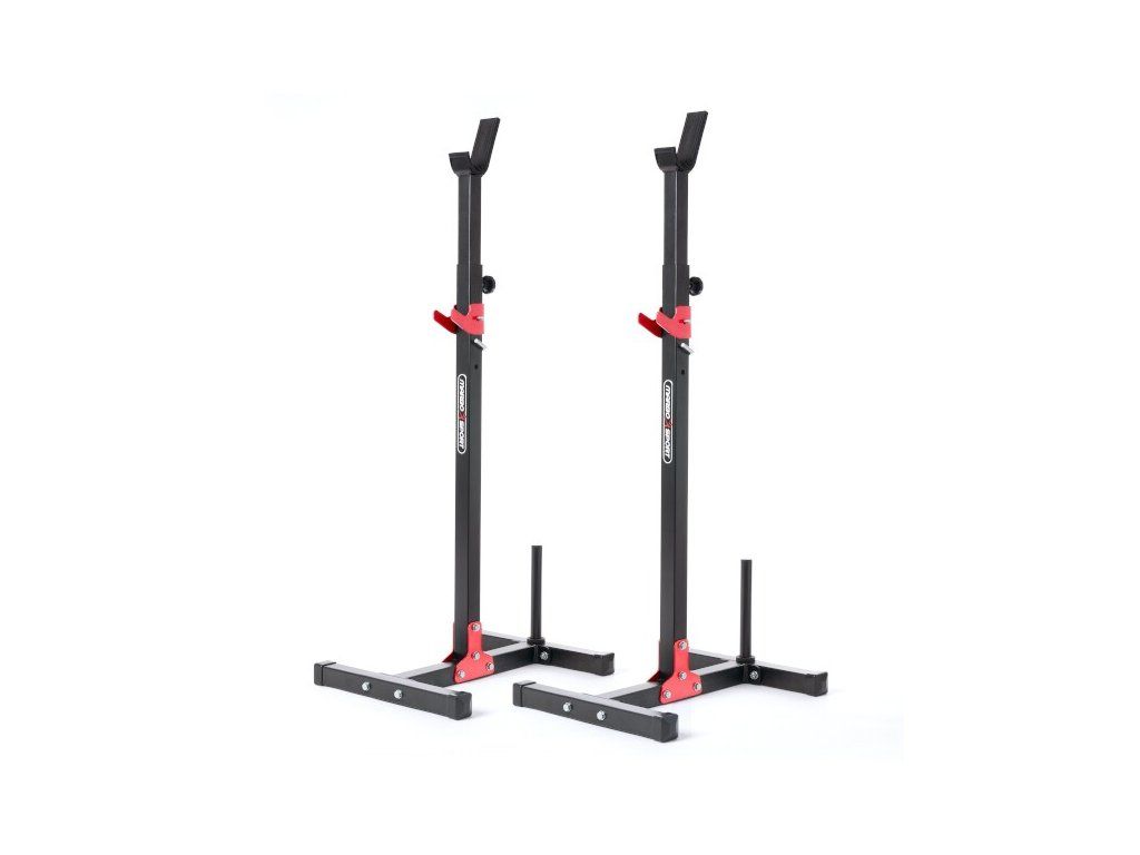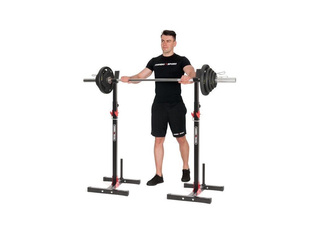Stojany MARBO MH-S202 vyrobené v Polsku s použitím oceli nejvyšší kvality, která zajišťují bezpečnou nosnost až do 250 kg. Jsou ideální volbou pro ty, kteří hledají trvanlivé a cenově dostupné stojany. Díky nastavení výšky ( v rozmezí 87 - 145 cm) můžou být použité samostatně nebo jako externí stojany během cvičení na lavici. Promyšlená konstrukce zajišťuje stabilitu a bezpečnost při tréninku. Komfort zajišťují pogumované spodní konce pro lepší stabilitu. Stojany jsou opatřeny trnem pro odkládání volných závaží.