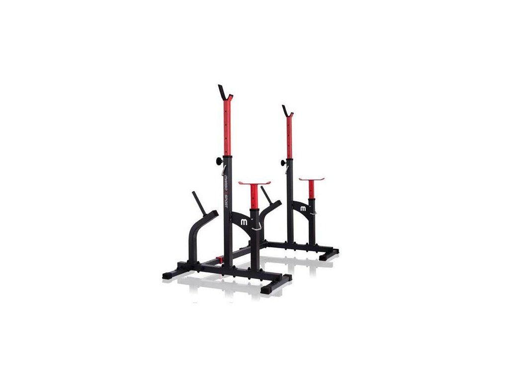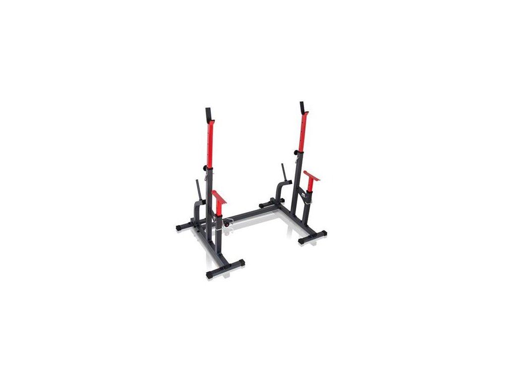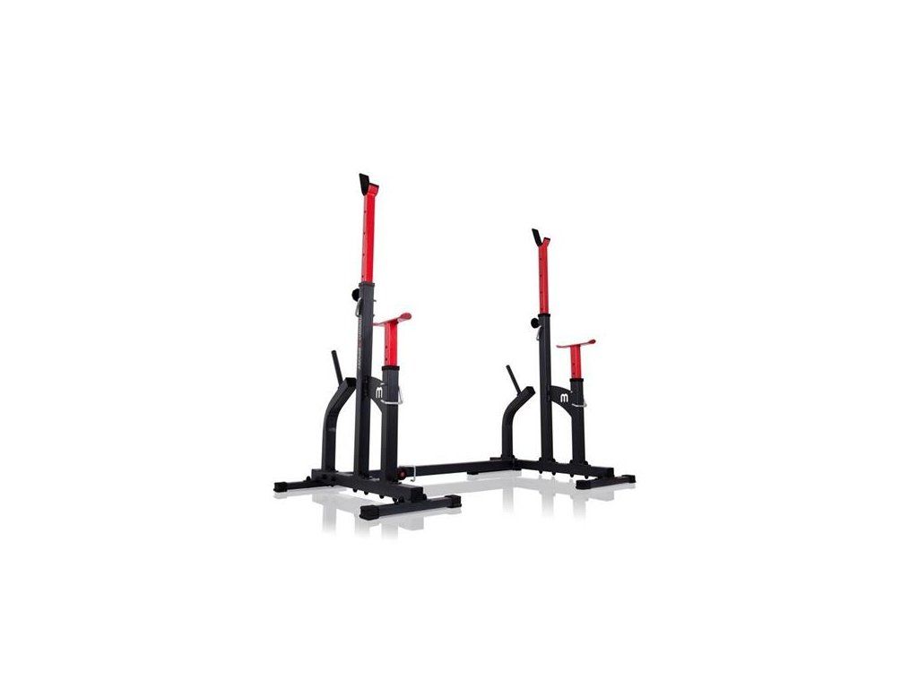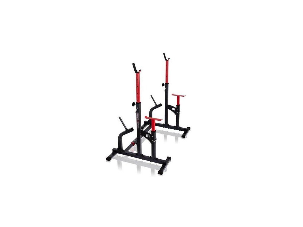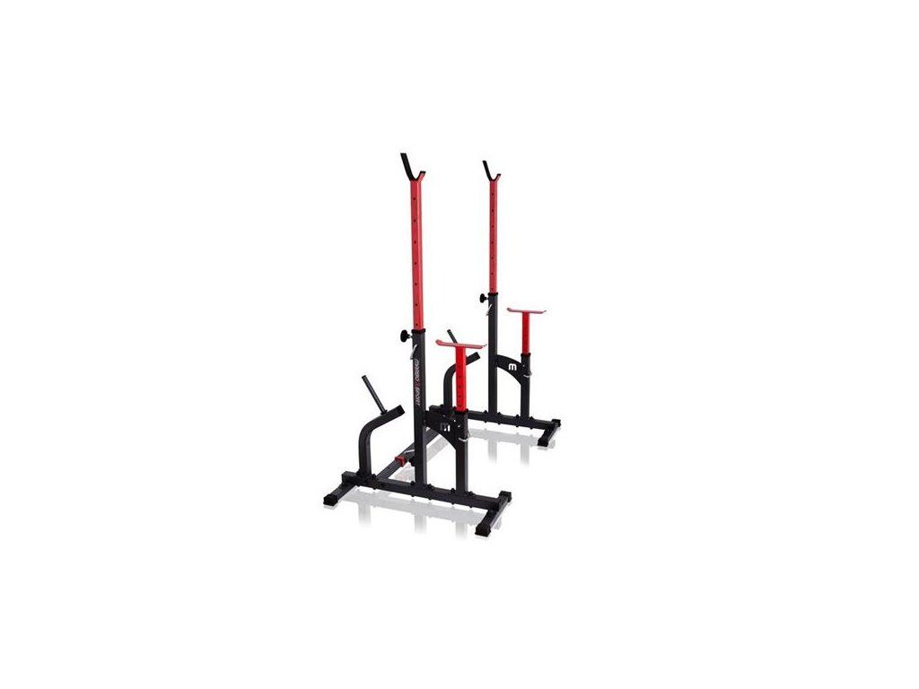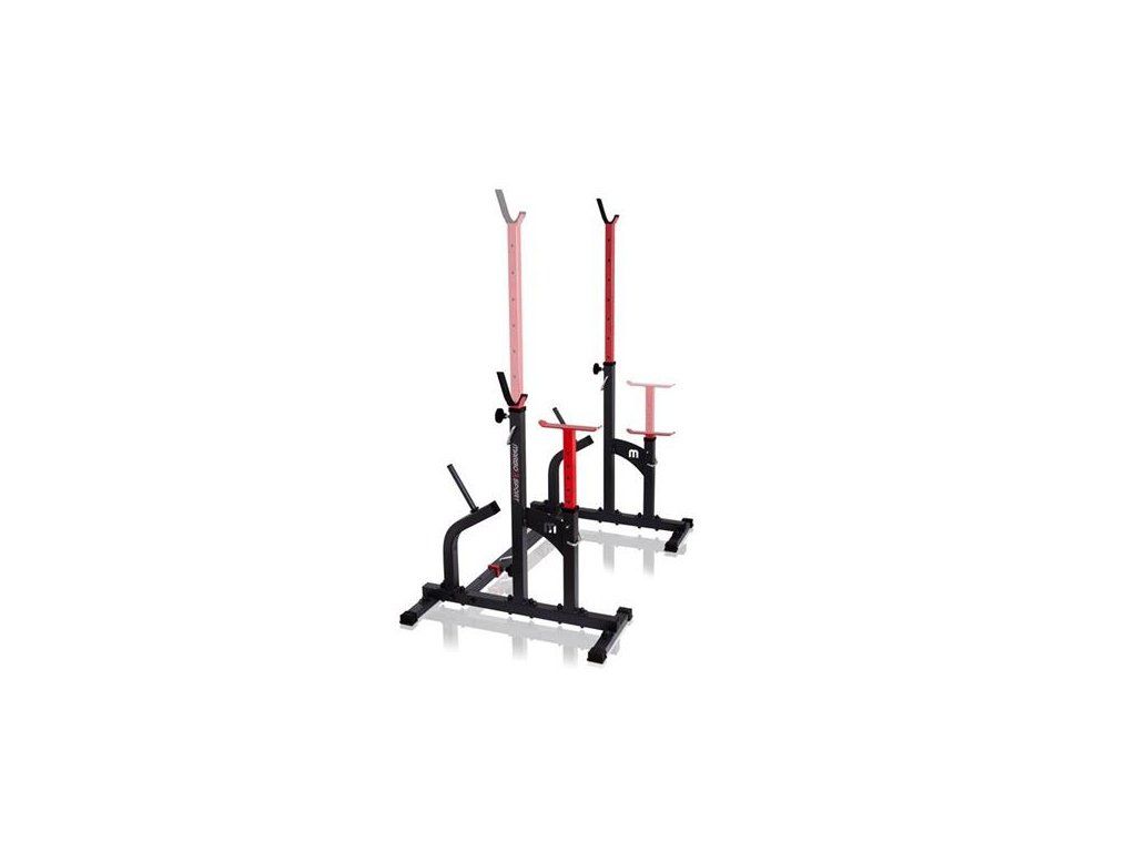 Kombinované stojany s jištěním známé značky MARBO MS-S104. Stojany jsou vyrobeny z velmi kvalitní oceli. Profil konstrukce je 50x50x2mm. Výšku lze nastavit do 8 stupňů a jištění do 6 stupňů.Navíc díky tří stupňové regulaci šířky tohoto zařízení, ideálně dopasujete délku Vaší činky. Maximální zátěž na stojan je 350kg.