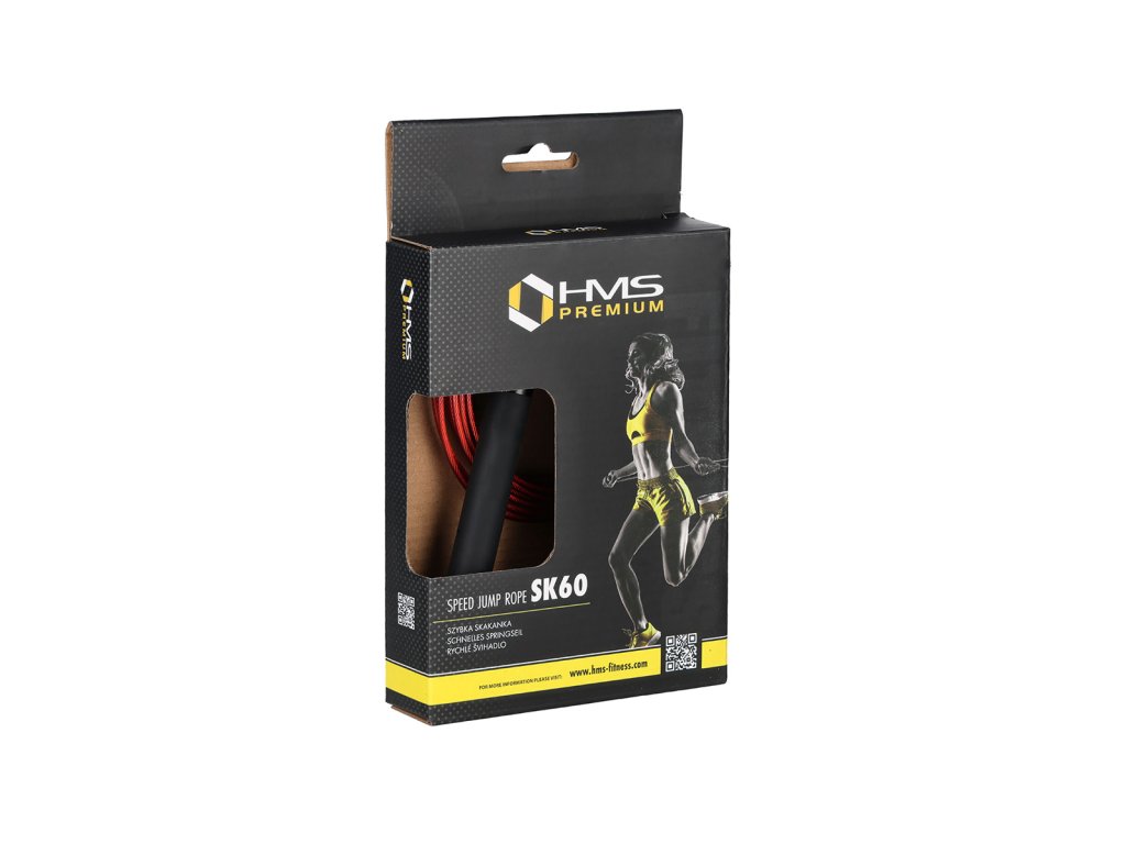 Crossfitové švihadlo HMS SK60 je vybaveno ocelovým lankem potaženým bužírkou. Hlavice je osazena kuličkovým ložiskem a díky plynulému otáčení předchází zamotání lanka. Hliníkové rukojeti jsou potažené vrstvou PVC, která zaručuje komfortní úchop. Lanko je v rukojeti uchyceno pomocí pružinového systému a je možné jej z rukojeti pomalu vysunout a zkrátit na požadovanou délku.