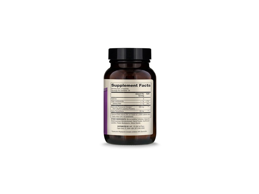 Quercetin (kvercetin) je velice účinný flavonoid. Komplex fytosomů obsahuje fosfolipidy, které pomáhají quercetinu a pterostilbenu v biologické dostupnosti. Flavonoidy hrají obecně roli v mnoha enzymatických procesech v našem těle.
