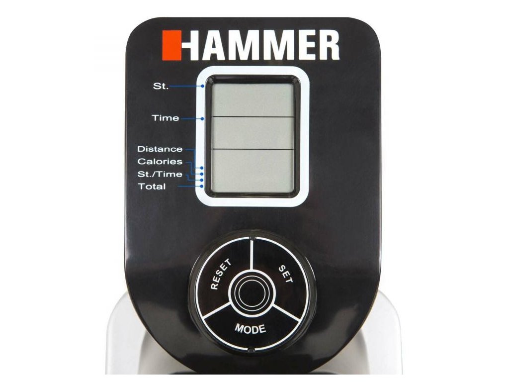Trenažér HAMMER Power Pro má LCD displej, kde se zobrazují základní hodnoty měřené počítačem. Jsou to čas, vzdálenost, záběry za minutu, celkový počet tahů a spálené kalorie. Displej lze jednoduše nastavit do potřebného úhlu, aby při veslování byly hodnoty dobře viditelné.