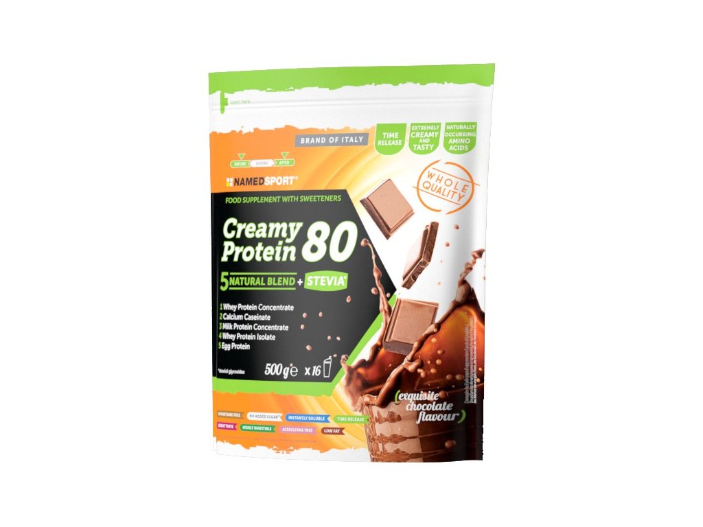 NAMEDSPORT Creamy Protein 80% 500 g, vícesložkový protein slazený stevií Creamy Protein 80: doplněk stravy v prášku se sladidly. Bílkoviny: přispívají k růstu a udržení svalové hmoty. Doplněk nenahrazuje vyváženou a různorodou stravu, která je pro správné fungování organismu nezbytně důležitá. Doporučená denní dávka: 30g rozpusťte ve 300 vody, mléka či jiné vhodné tekutiny. Užijte mezi jídly. Určeno především sportovcům. Nepřekračujte doporučené dávkování. Není určeno dětem. Neužívejte v těhotenství. V případě dlouhodobého užívání se poraďte se svým lékařem. Uchovávejte mimo dosah dětí. Skladujte v originálně uzavřeném balení na chladném, suchém a temném místě, mimo dosah dětí. Chraňte před vysokými teplotami a přímým slunečním svitem. Neužívejte při přecitlivělosti na některou ze složek přípravku. V případě jakýchkoliv pochybností konzultujte užití s lékařem. Dodržujte pitný režim. Po otevření spotřebujte v nejkratší možné době. Info o výrobku: info@fit-pro.cz Nutriční informace: ve 100 g enegie 1601 kJ/ 374 Kcal tuky 2,5 g z toho nasycené mastné kyseliny 1,6 g sacharidy 8,8 g z toho cukry 7,2 g vláknina 0 g bílkoviny 77 g sůl 0,62 g total BCAA 16,4 g Složení výrobku příchuť: ČOKOLÁDA.: 40% syrovátkový koncentrát, 25% kaseinát vápenatý, 23% koncentrát mléčné bílkoviny, 4% odtučněný kakaový prášek, 3% syrovátkový izolát, 2% sušená vaječná bílkovina, aroma (obsahuje laktózu), emulgátor:sojový lecitin (E322); sladidla:sukralóza (E955), steviol-glykosidy (E960); protispékavá látka:oxid křemičitý (E551). Výživové složení:100g/30g: energetická hodnota: 1579kJ/372kcal/474kJ/112kcal. Tuky: 3,2g/0,96g, z toho nasycené mastné kyseliny: 2,5g/0,75g, sacharidy:7,9g/2,37g, z toho cukr: 7g/2,1g, vláknina:0g/0g, bílkoviny:78g/23,4g, sůl:0,6g/0,18g. BCAA celkově:16g/4,8g. Aminokyselinový profil:100g/30g: L-alanin:3,79g/1,14g, L-arginin:3,07g/ 0,92g, kyselina asparagová: 8,55g/2,56g, L-cystein: 1,23g/0,37g, L-glutamin: 16,94g/5,08g, L-glycin: 1,84g/0,55g, L-histidin: 2,37g/0,71g, L-isoleucin: 5,55g/1,66g, L-leucin: 9,5g/2,85g, L-lysin: 8,22g/2,47g, L-methionin: 2,34g/0,7g, L-fenylalanin: 4,17g/1,25g, L-prolin: 8,45g/2,53g, L-serin: 5,24g/1,57g,L-threonin: 5,1g/1,53g, L-tryptofan: 1,48g/0,44g, L-tyrosin: 4,23g/1,27g, L-valin: 5,95g/1,78g. Neobsahuje aspartam, acesulfam. Alergeny vyznačeny tučně. Po spotřebování zlikvidujte obal šetrně k životnímu prostředí. Složení výrobku příchuť: MANGO-BROSKEV: 43% syrovátkový koncentrát, 25% kaseinát vápenatý, 24% koncentrát mléčné bílkoviny, 3% syrovátkový izolát, aroma, 2% sušená vaječná bílkovina, okyselující látka: kyselina jablečná (E296); barvící látka: prášek z červené řepy(E162); sladidla:sukralóza(E955), steviol-glykosidy(E960); emulgátor:sojový lecitin (E322); protispékavá látka:oxid křemičitý(E551); barvivo: beta-karoten (E160a). Může obsahovat lepek. Výživové složení:100g/30g: energetická hodnota:1601 kJ/374kcal/480kJ/112kcal. Tuky:2,5g/0,75g, z toho nasycené mastné kyseliny:1,6g/0,48g, sacharidy: 8,8g/2,64g,z toho cukr:7,2g/2,2g, vláknina:0g/0g, bílkoviny:77g/23,1g,sůl:0,62g/0,19g.BCAA celkově: 16,2g/4,8g. Aminokyselinový profil: 100g/30g: L-alanin: 3,79g/1,14g, L-arginin: 3,07g/0,92g, kyselina asparagová: 8,55g/2,56g, L-cystein:1,23g/0,37g, L-glutamin:16,94g/5,08g, L-glycin:1,84g/0,55g, L-histidin:2,37g/0,71g, L-isoleucin: 5,55g/1,66g, L-leucin:9,5g/2,85g, L-lysin: 8,22g/2,47g, L-methionin: 2,34g/0,7g, L-fenylalanin:4,17g/1,25g, L-prolin:8,45g/2,53g, L-serin: 5,24g/1,57g, L-threonin: 5,1g/ 1,53g, L-tryptofan:1,48g/0,44g, L-tyrosin:4,23g/1,27g, L-valin:5,95g/1,78g. Neobsahuje aspartam, acesulfam. Alergeny vyznačeny tučně. Po spotřebování zlikvidujte obal šetrně k životnímu prostředí. Balení: 500g, 16 porcí. Výrobce: Named S.p.a. Via Lega Lombarda, 33-20855 Lesmo (MB) ITALY. Minimální trvanlivost do a číslo šarže (vztahuje se na produkt v případě, že je správně skladován v uzavřeném obalu): viz obal. Dovoz/prodej: FIT-PRO CZECH s.r.o., Jaurisova 515/4, Praha 4, 140 00, Czech Republic.