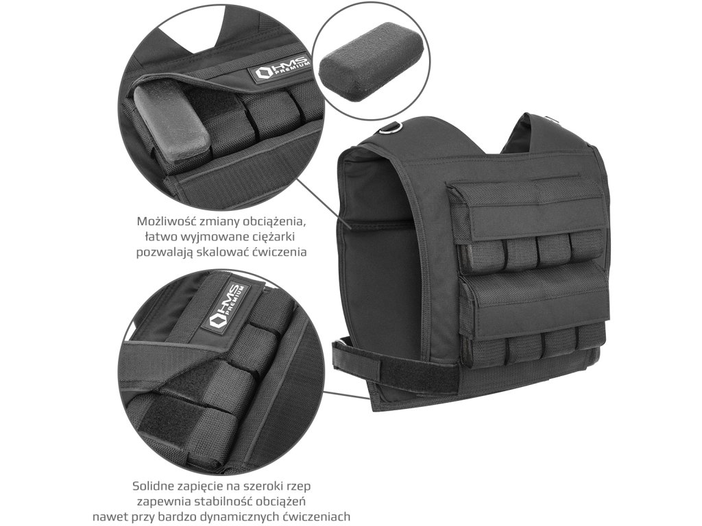 Zátěžová vesta HMS Premium KTO16 je ideálním nástrojem pro trénink s vlastní vahou. Vesta po nasazení a zapnutí přiléhá k tělu a tak dokáže rovnoměrně zvýšit zátěž při trénku většiny cviků od přítahů na hrazdě, přes kliky až po běh.