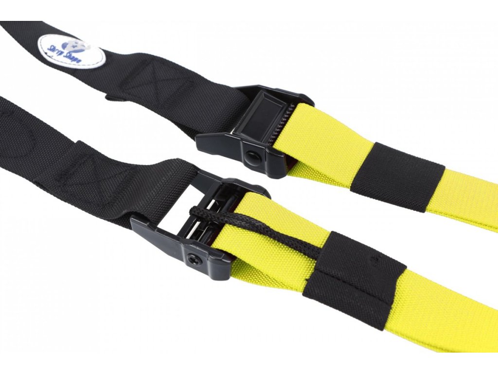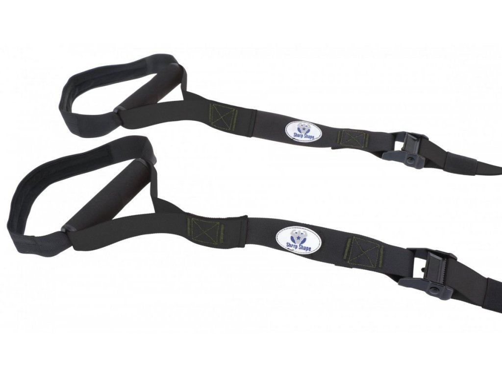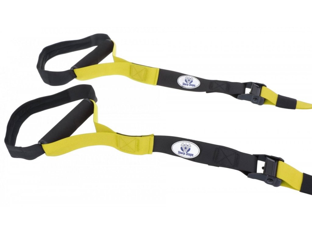 S unikátním závěsným systémem SHARP SHAPE dokáže efektivně posilovat svalstvo celého těla a to za pomoci vlastní váhy. Závěsný systém se skládá z popruhů, karabin a přezek, díky kterým lze cvičit prakticky kdekoliv a posilovat tak celé tělo. Mechanismus také umožňuje upevnění ke dveřím. Díky mnoha různorodým cvikům lze systematicky procvičit a posílit svalstvo komplexně. Tato víceúčelová posilovací a rehabilitační pomůcka vám poslouží ke kondičnímu i balančnímu cvičení.