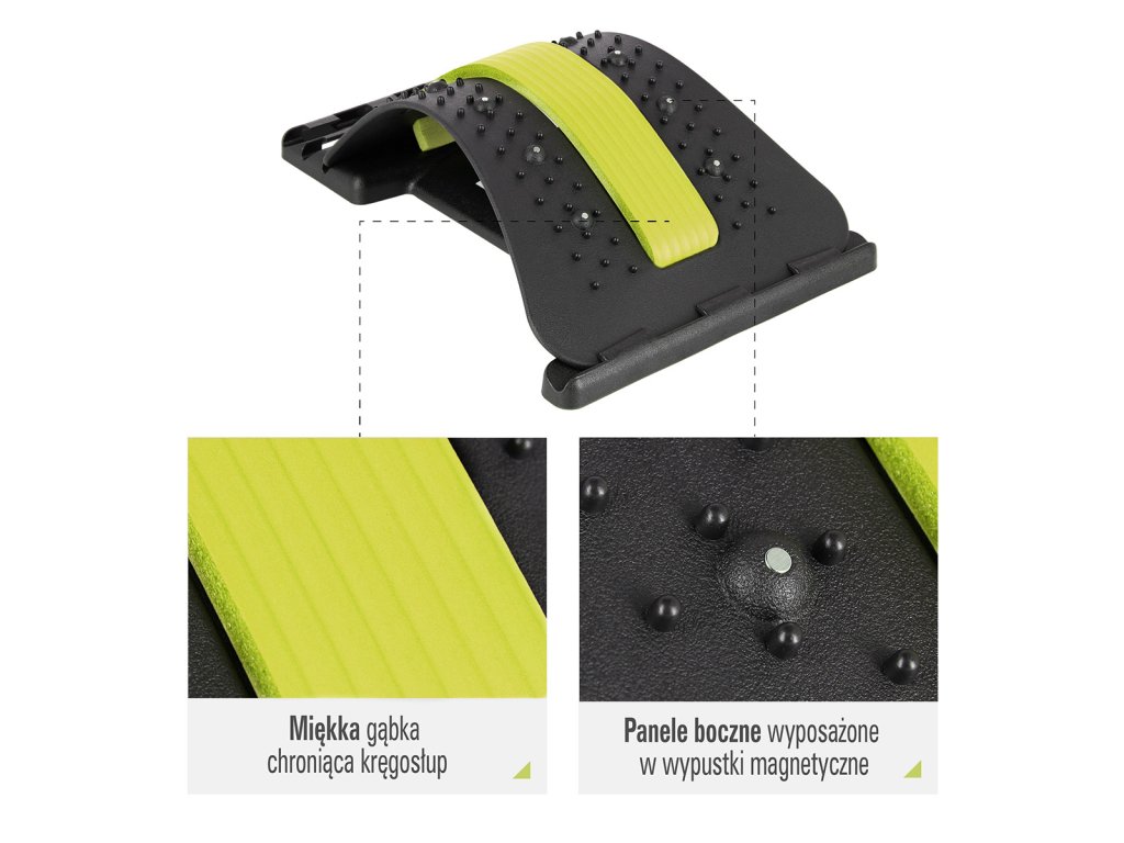 Zařízení má měkkou pěnovou vložku, která chrání a zajišťuje páteř během protahování. Maximální zatížení uživatelem je 100 kg.