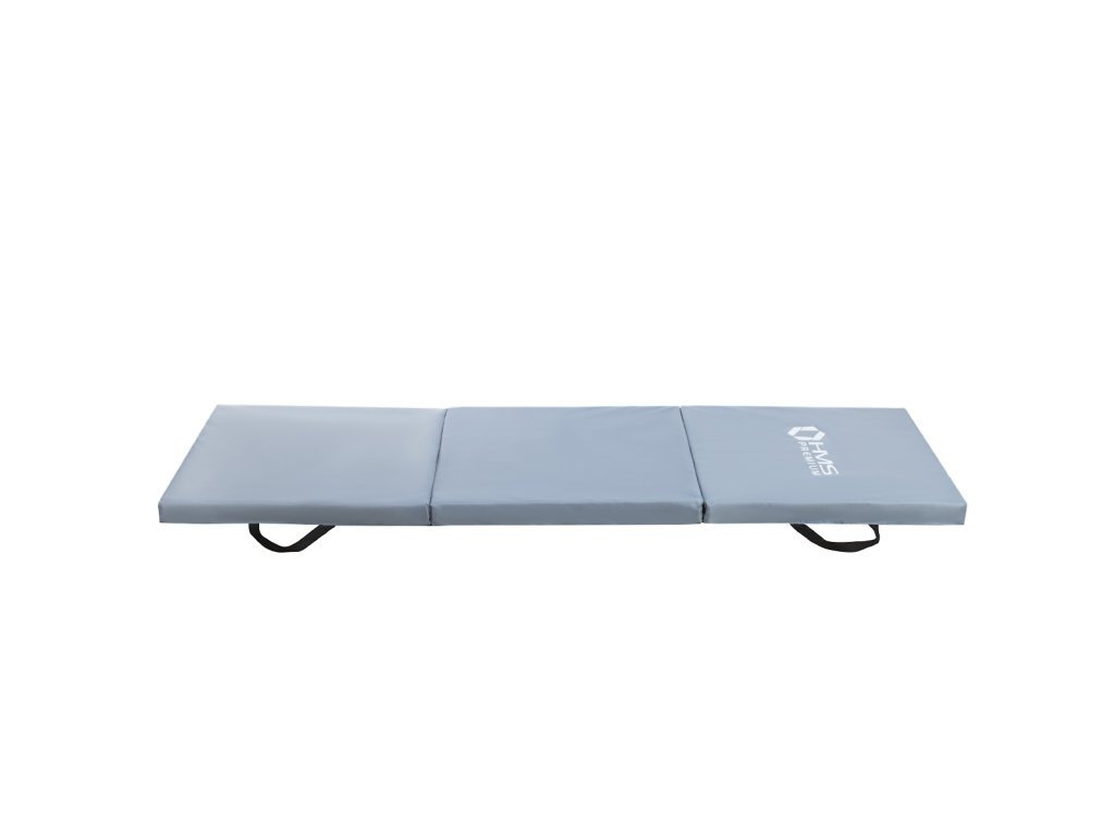 HMS Premium MGS02 je skládací žíněnka vyrobená ze tří bloků pěnového polyetylenu, které jsou vloženy do nylonového obalu. Díky tomuto řešení je možné podložku snadno složit a přenést.